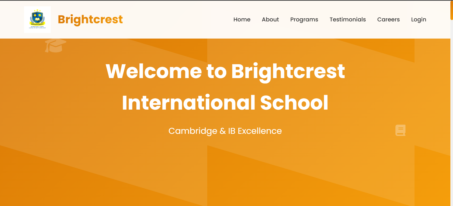 Website for Brightcrest International School - an online IB and Cambridge school platform.